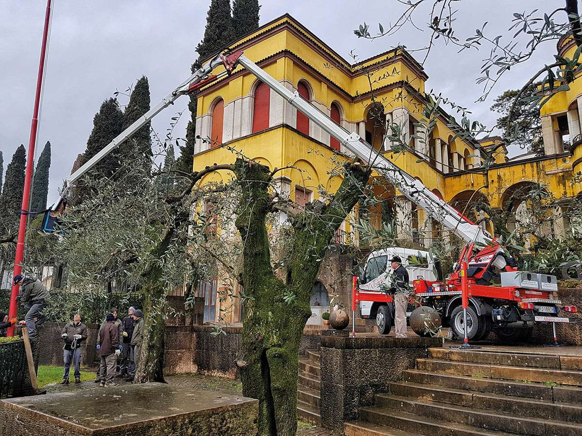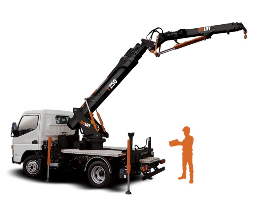 Șasiul special și configurația stabilizatoarelor „V” permit operarea și în fața cabinei.