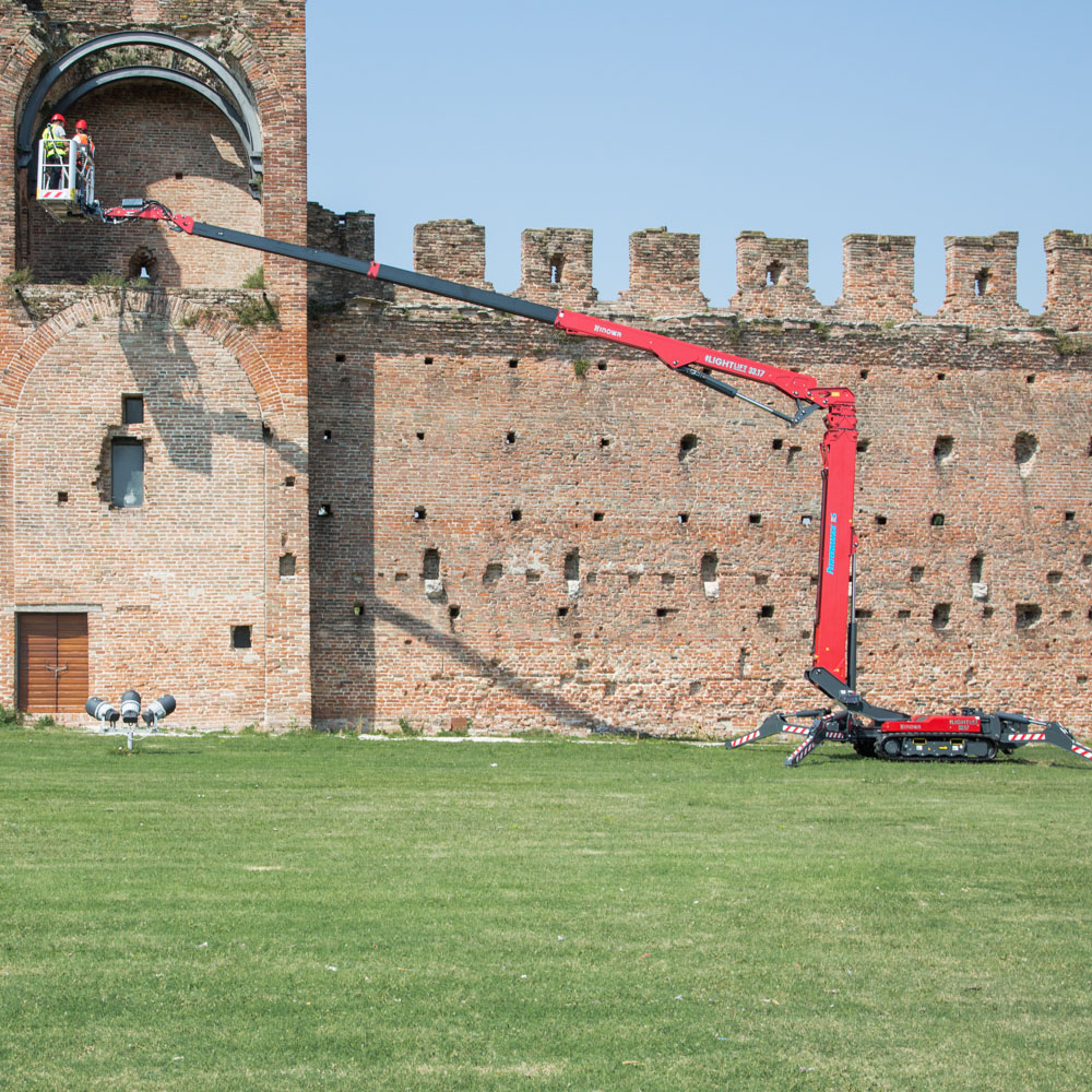 Datorită brațului cu un unghi de rotație de ± 90° și structurii sale speciale, această mașină permite ocolirea obstacolelor la înălțime (17 metri Up&Over) și lucrul la niveluri negative.