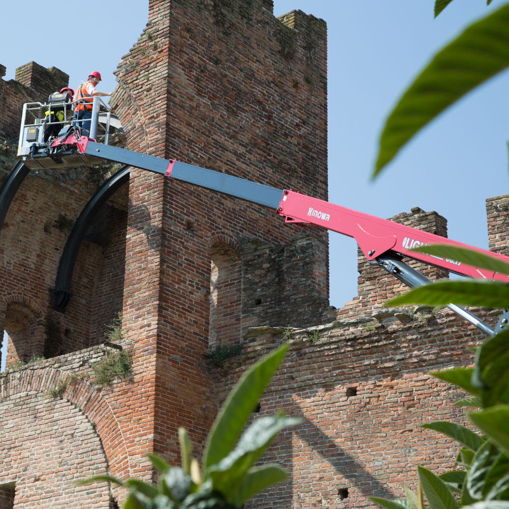 • Traiectorie verticală excelentă datorită sistemului de foarfece care permite lucrul în apropierea peretelui cu simplitate și precizie extremă.