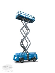 Nacela tip foarfecă Genie® GS™-3390 pentru teren accidentat oferă o capacitate de tracțiune integrală robustă, orientată spre construcție, cu control pozitiv al tracțiunii - ideale pentru creșterea productivității în aplicații pentru teren îngust și accidentat.
