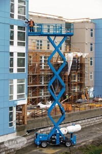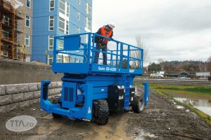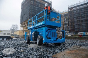 Nacela tip foarfecă Genie® GS™-4390 pentru teren accidentat are tracțiune pe patru roți și control pozitiv al tracțiunii - oferindu-i o capacitate de înclinare de până la 50% atunci când conduceți pe pante. Această mașină robustă, orientată spre construcție, este construită pentru a face față celor mai riguroase condiții de șantier.