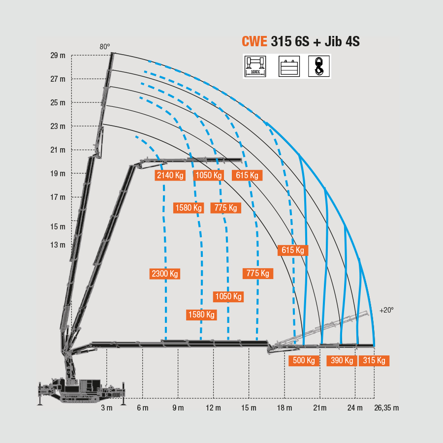 Macara genială, cu performanțe care până acum erau considerate imposibile. CWE 315 este un proiect exclusiv al BG LIFT, născut din nevoia de a crea o macara compactă și ușoară, dar în același timp puternică și puternică ca și colegii săi de dimensiuni mai mari. Rezultatele? Peste 26 de metri de distanță orizontală și aproape 10 tone de capacitate maximă de ridicare într-un șasiu redus, agil și extrem de manevrabil