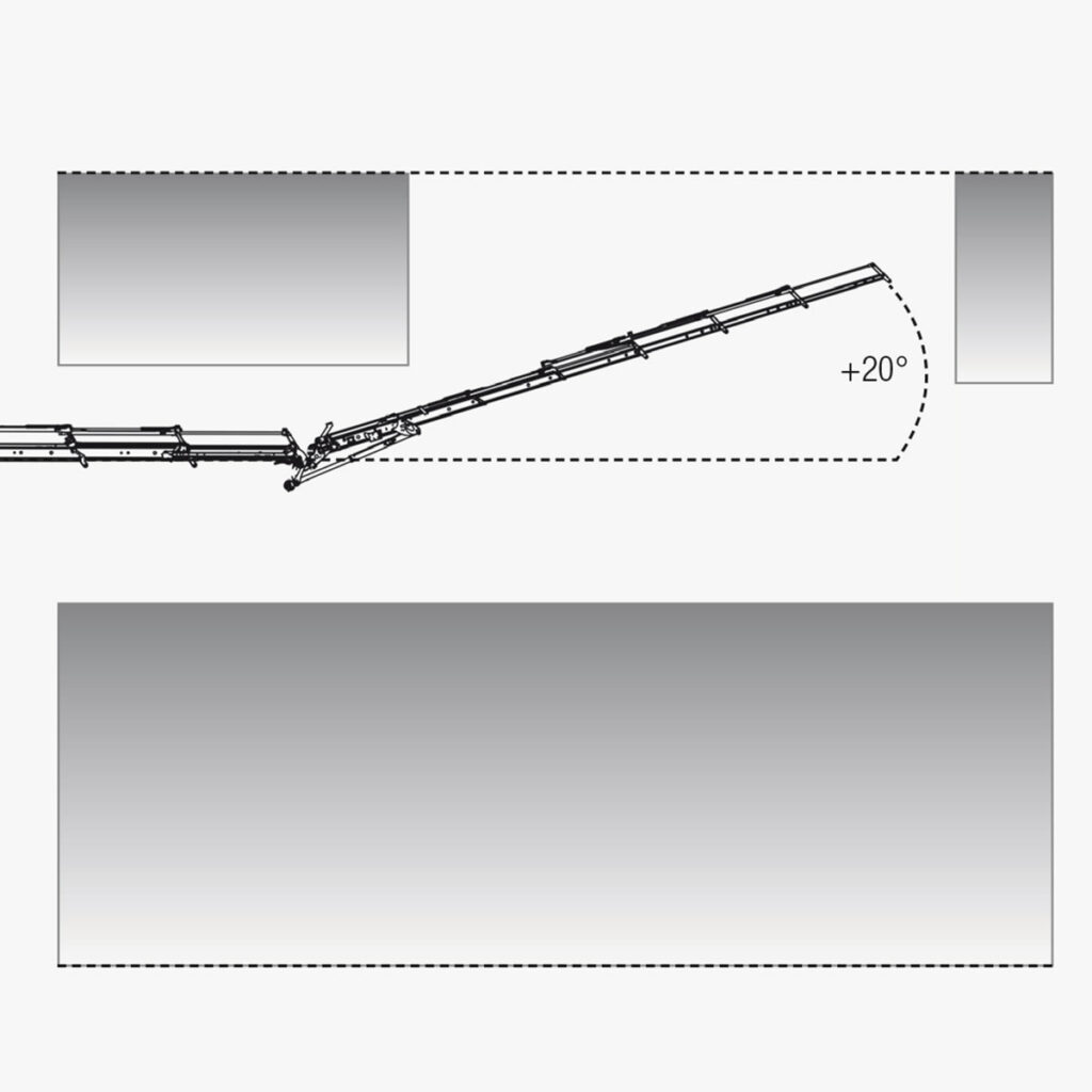 Al doilea braț telescopic articulat și brațul hidraulic au sistem de operare unghiular de 15° și respectiv 20° peste alinierea orizontală a brațului. Această situație permite operarea în interiorul clădirilor și oferă posibilitatea depășirii obstacolelor precum mansardele, ușa din față și grinzile.