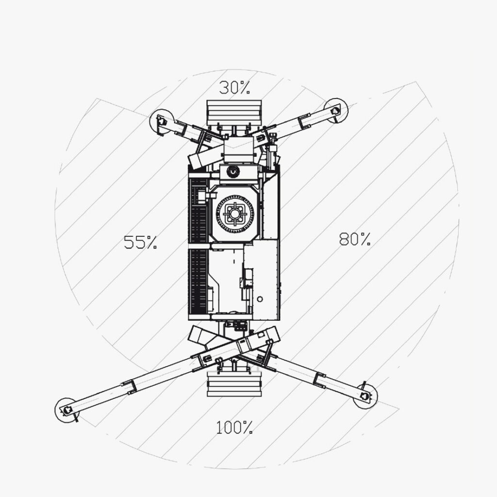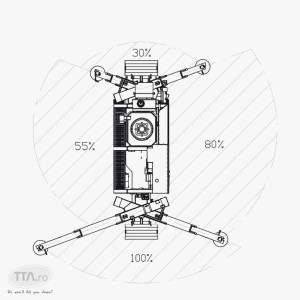 Cadru „X” care face posibilă lucrul cu stabilizatoarele în limitele gabaritului și cu spațiul minim.