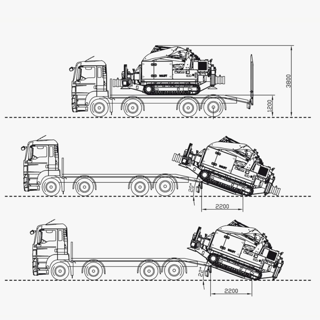 Compactitatea și unghiul larg de gardă la sol permit încărcarea macaralei folosind rampa scurtă.