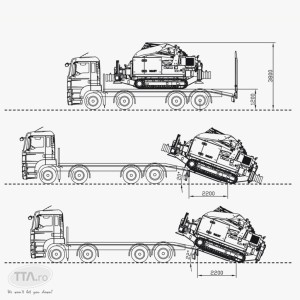 Unghiul generos de gardă la sol permite încărcarea utilajului și pe camion cu rampe scurte; simplificarea manevrelor si optimizarea timpului de incarcare. Facilitando le manovre și optimizando i tempi di încărcare.