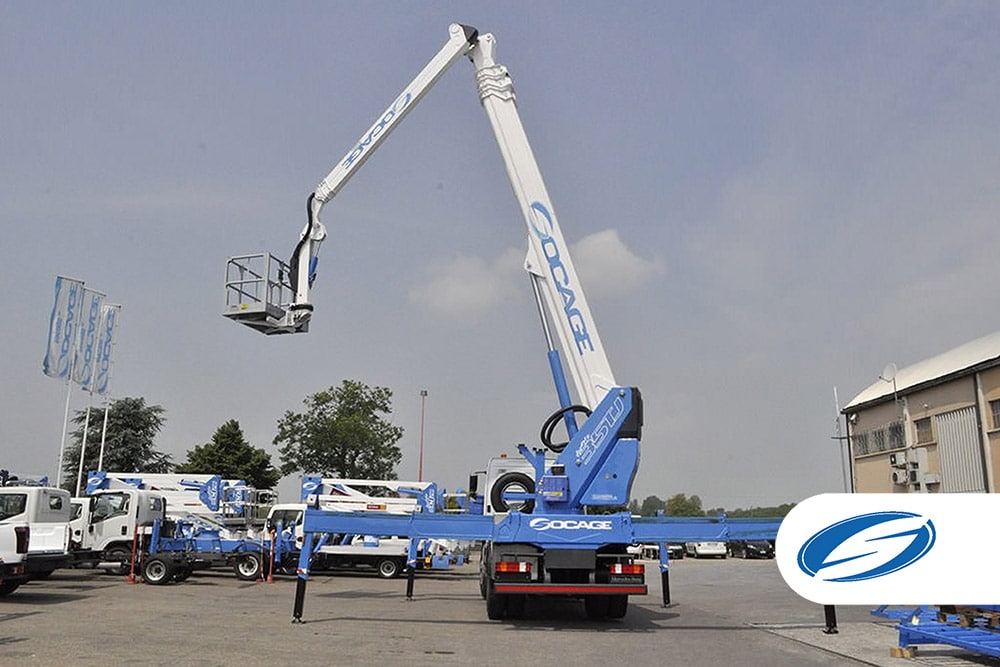 Dimensiunile cosului din aluminiu sunt 2300 x 900 x h 1100 mm, extinzand hidraulic la 3300 mm pentru a mari spatiul de operare. Rotirea coșului este de 360° (180° stânga + 180° dreapta) permițând o mare versatilitate de poziționare pentru lucru.