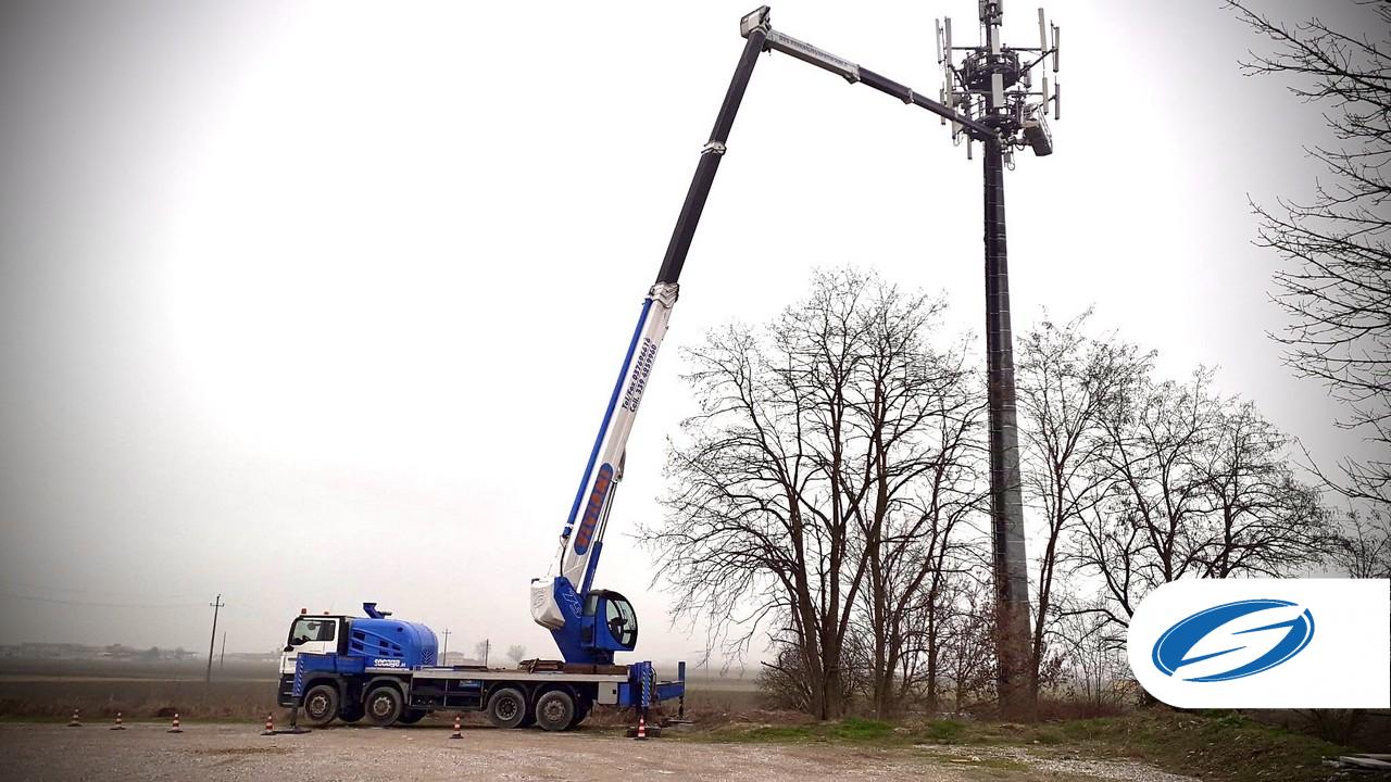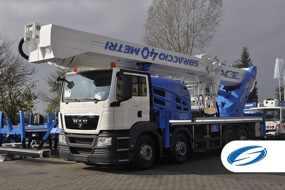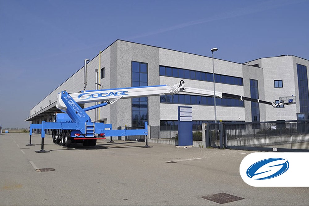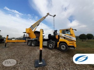 Platforma pentru lucru la inaltime (nacela PRB),  cu brat telescopic + jib + jib suplimentar, model Socage – 75TJJ,  montata pe autosasiu 32t
