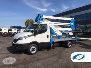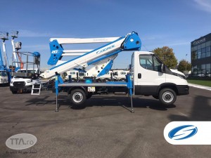 E’ in grado di raggiungere un’altezza di lavoro massimo di 19,60 m e uno sbraccio laterale di 9 m con una capacità di carico di 230 kg o 300 kg come optional. (2 operatori + materiale).